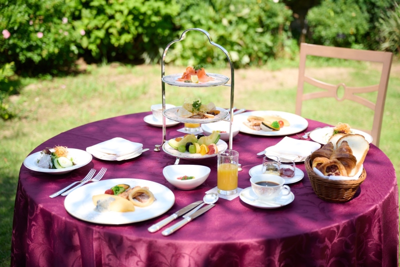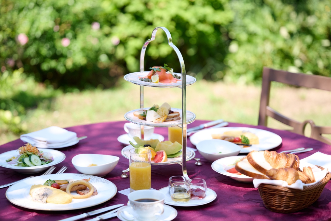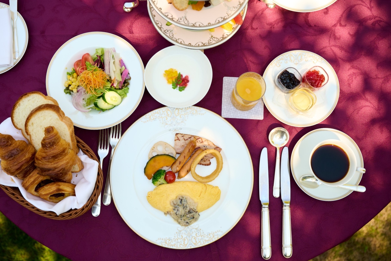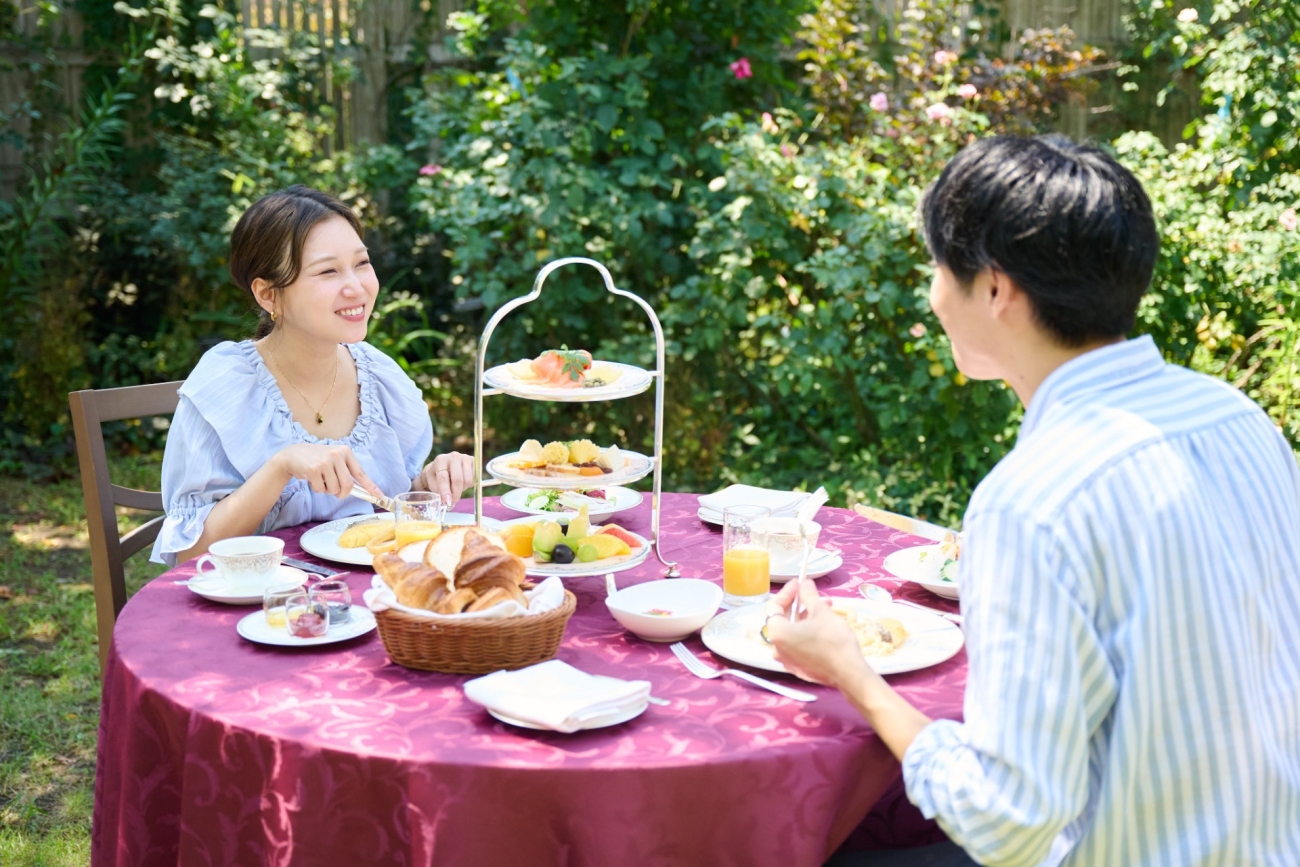 ホテル最上級の「ロイヤルスイート」にご宿泊いただいた翌朝、季節のバラが咲き誇る「横浜イングリッシュガーデン」でプレミアムブレックファストを三段のハイティースタンドで華やかに。ホテルのシェフが目の前で腕をふるうアツアツのオムレツやフレッシュなサラダ、色鮮やかなフルーツなどを、ふたりだけの花園の中でご堪能ください。