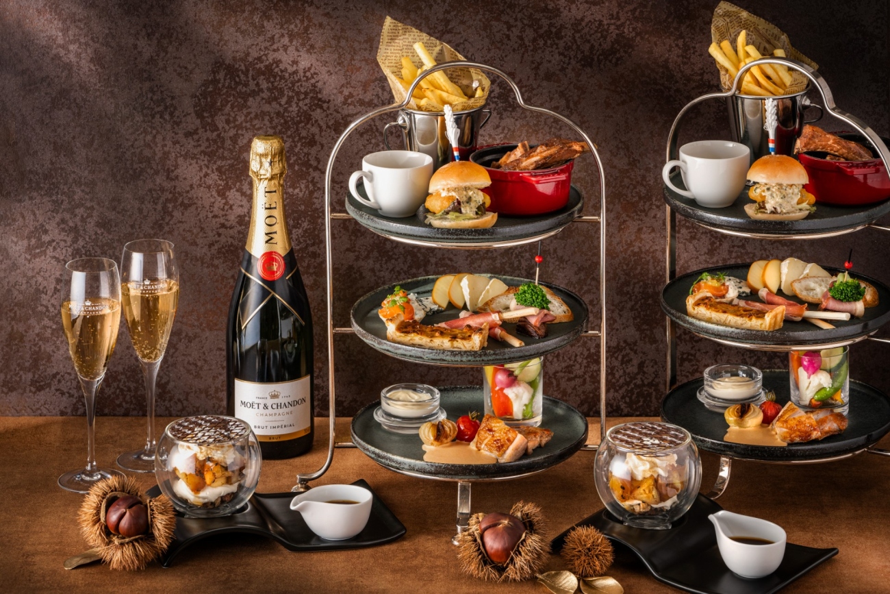 スカイラウンジ「ベイ・ビュー」では、ホテル最上階の夜景とともに、秋の味覚とシャンパンをフリーフローで楽しめる「イブニングハイティー」を10/1(水)よりご用意いたします。華やかな泡が魅力のモエ・エ・シャンドンと、フレンチシェフが腕を振るうお料理のマリアージュをご堪能ください。