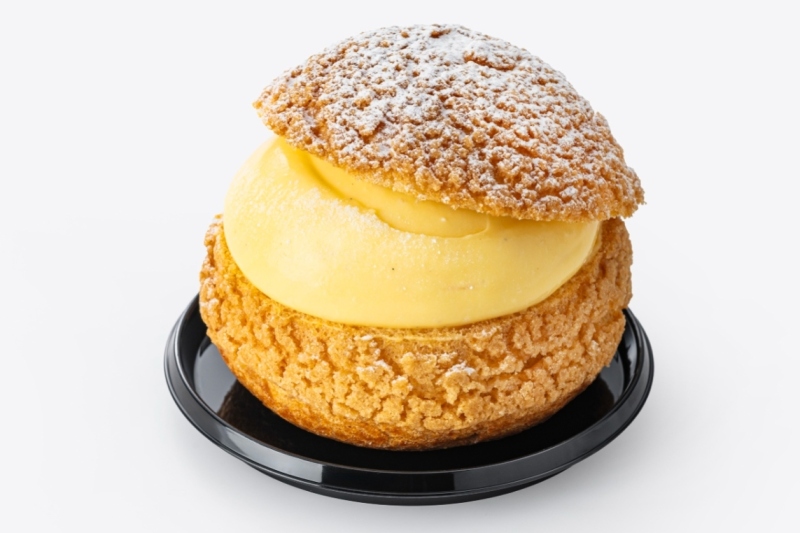 クッキー生地を乗せてしっかり焼き上げたシュー生地に、カスタードクリームをたっぷり挟みました。