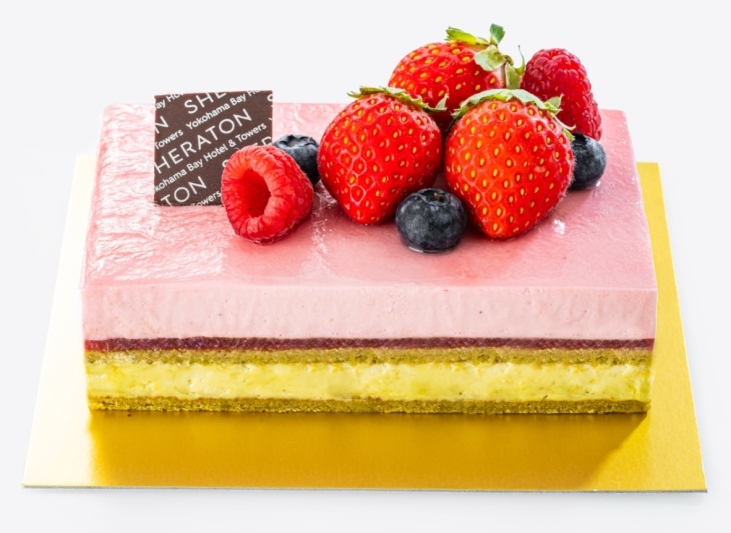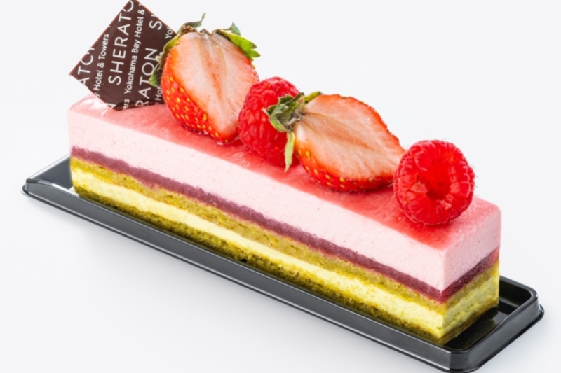 ピスタチオと苺のムースに苺のジュレがアクセントのマイルドで優しい味わい。