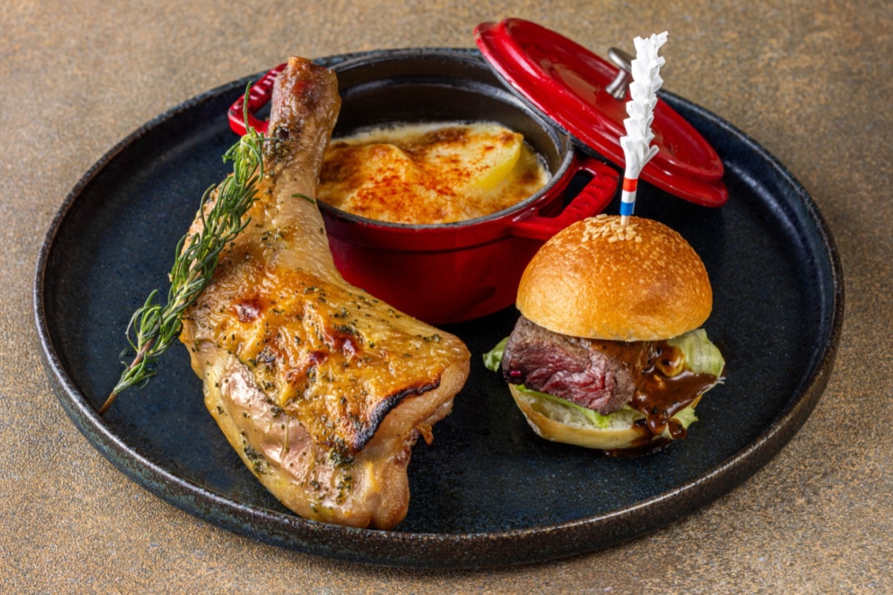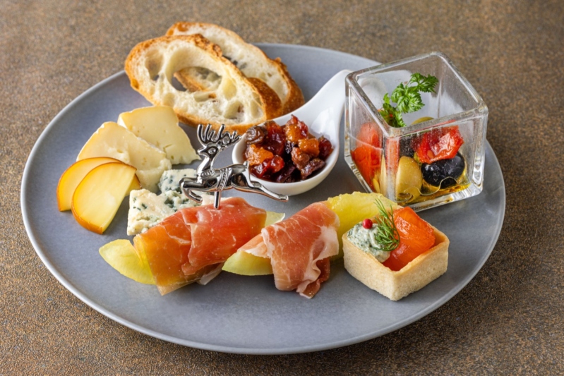 3段のハイティースタンドと、メインプレートには、「骨付きローストチキン」やトリュフソース香る「牛フィレ肉のステーキサンド」など、シェフこだわりのクリスマスにぴったりなお料理が揃います。煌めくシャンパーニュの泡、音楽、夜景に包まれるラグジュアリーなひとときをご堪能ください。