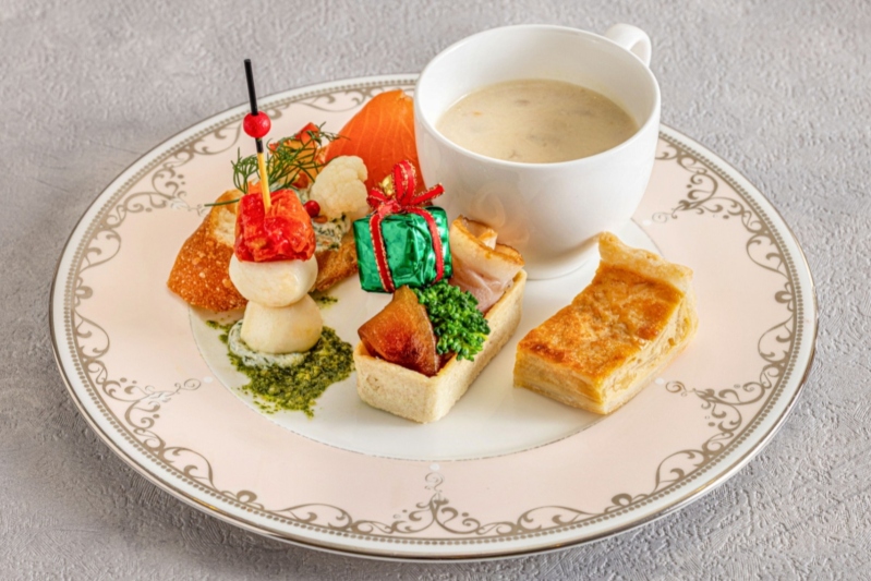 イブニングハイティーは、“モエ・エ・ シャンドン”シャンパンのフリーフローとともに、フレンチシェフ高木が手がける贅沢なメニューがクリスマスを優雅に演出いたします。