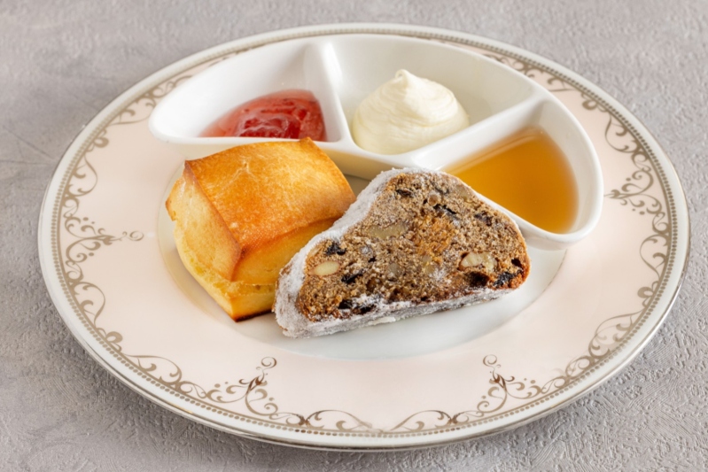 クリスマス限定の「アフタヌーンティーセット」では、チョコレートショートケーキやブランマンジェなどのスイーツ、フレンチの技が光るセイボリー、自家製シュトーレンとスコーンをお楽しみいただけます。