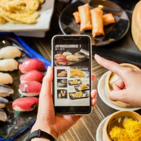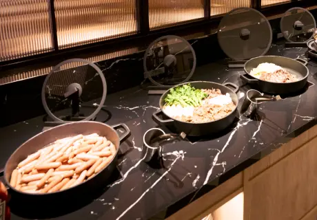 コンパスのランチ&ディナーで導入している非接触オーダーシステム「オーダービート」は、オーダーを受けてから一皿ずつ丁寧に仕上げてご提供いたしますので、揚げたて、焼き立てのお料理をお楽しみいただけます。