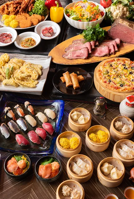 約80種のメニューをご用意し、お好きなお料理を好きなだけお楽しみいただける