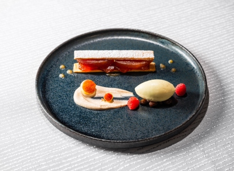 「鴨のスモークとリンゴのキャラメゼのタルト」など、フレンチのセンスを生かしたセイボリーもお楽しみいただけるアフタヌーンティーセットをご用意いたしました。