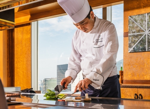 1990年ロイヤルパークホテルを皮切りに、様々なホテルの鉄板焼レストランにて研鑽を積む。2014年8月横浜ベイシェラトン ホテル&タワーズ入社、鉄板焼「さがみ」勤務。2015年4月より同レストラン料理長として活躍中。その食材を選ぶ確かな目と素材の良さを存分に引き出す料理の腕に、遠方から訪れるファンも後を絶たない。